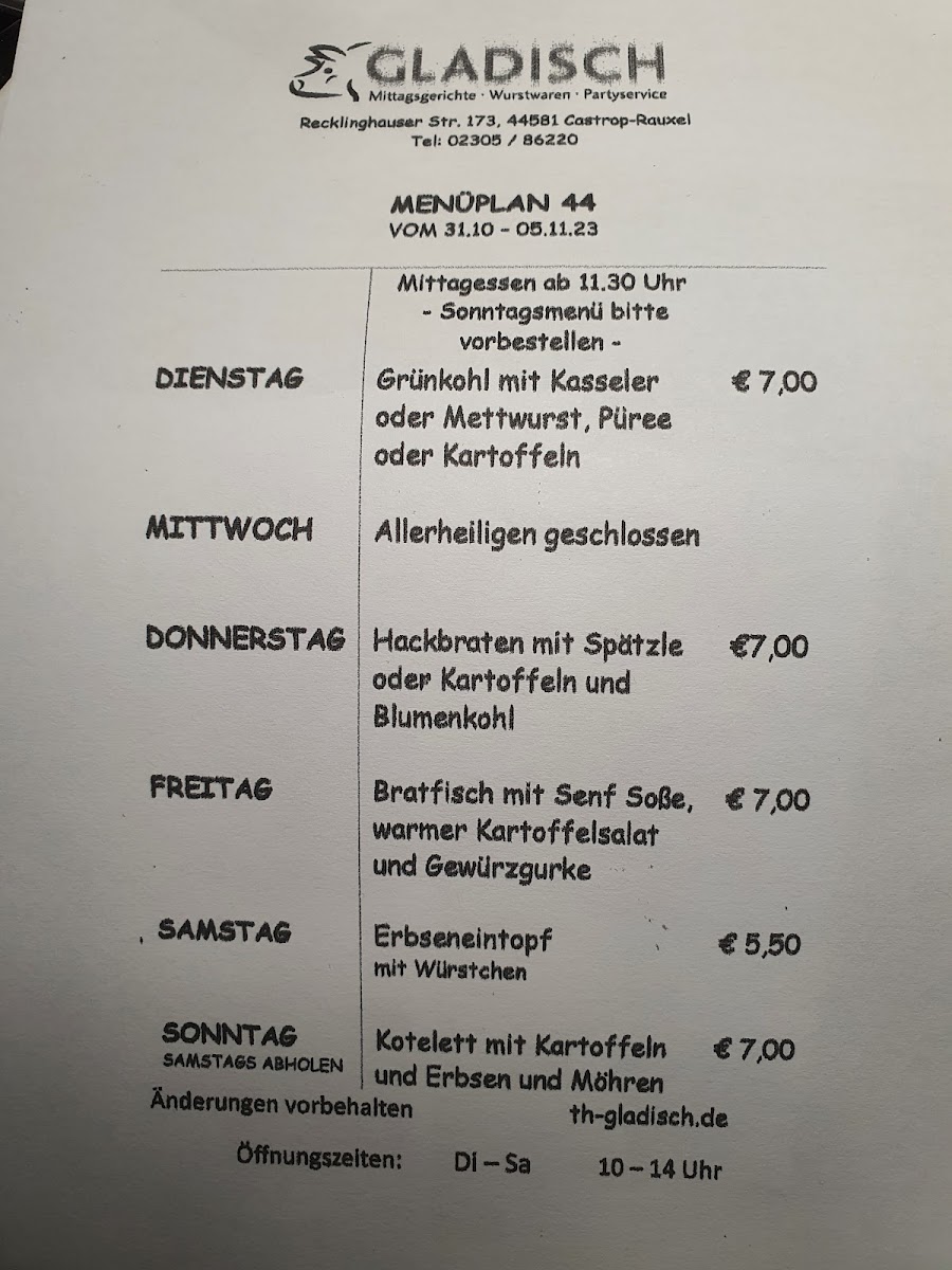What makes the experience especially genuine is the seamless blend of kitchen warmth and a welcoming spirit that feels more like a neighborhood ritual than a commercial lunch stop. Many visitors come not only for the dishes but for the trust in quality and the subtle, understated joy of eating meals reminiscent of family gatherings. The local love for seasonal, substantial comfort food shines through in every bite and every interaction, making GLADISCH a quietly cherished find in Castrop-Rauxel.